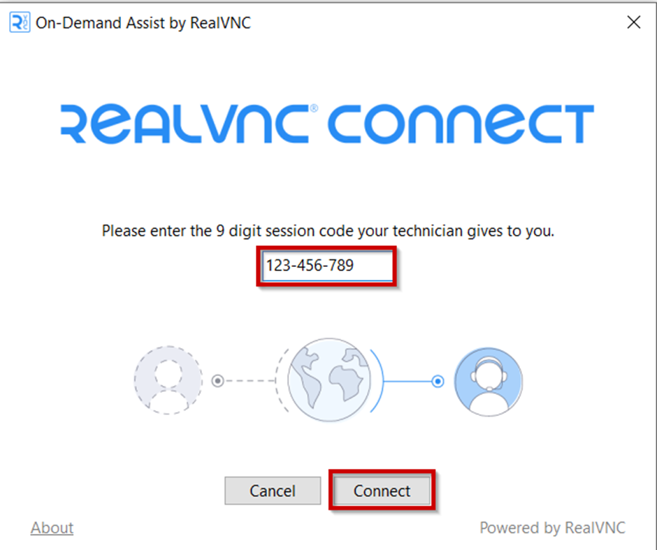 Step 4 – Enter the code from the Technician and click Connect