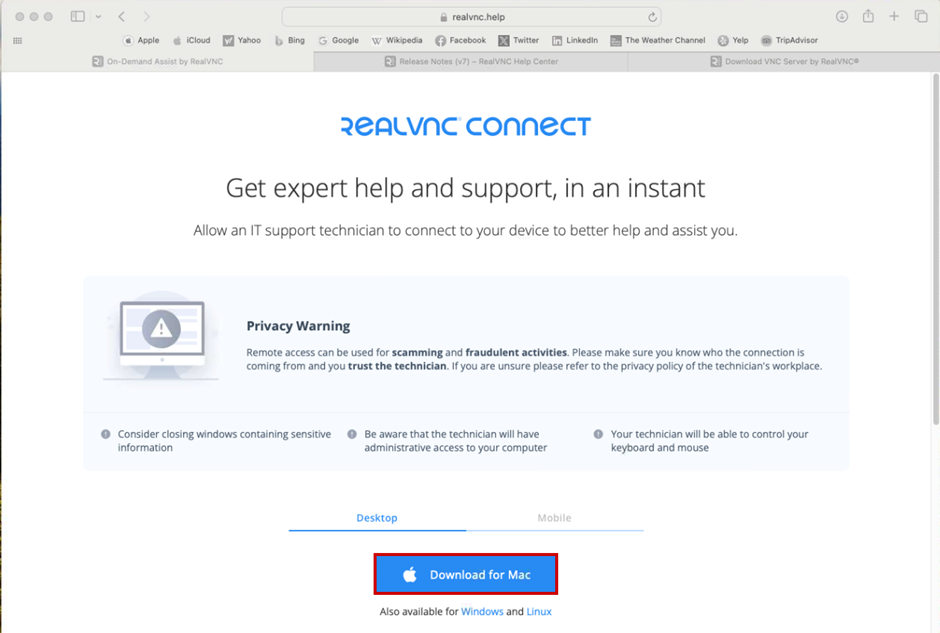 Step 1 – Go to https://www.realvnc.help