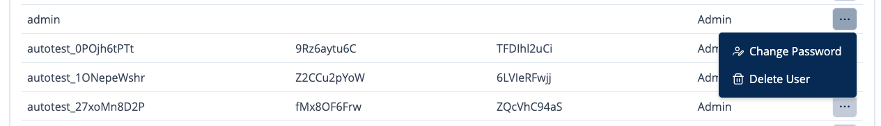 Within the Users section of the On-Prem Management Console, Administrators can also change the password of existing user. To do this, click the ellipsis next to the user you wish to change: