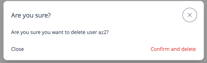You will then be presented with a pop-up where you will be asked to confirm you wish to under this action. Click "Confirm and delete" to delete the user's account: