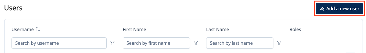 Within the Users section of the On-Prem Management Console, Administrators can create new users. This is done by pressing the ‘Add a new user’ button: