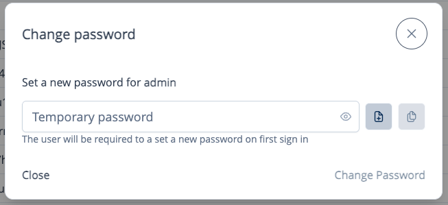 This will open up a pop-up that allows you to enter or generate a new temporary password, which will invalidate the users existing password: