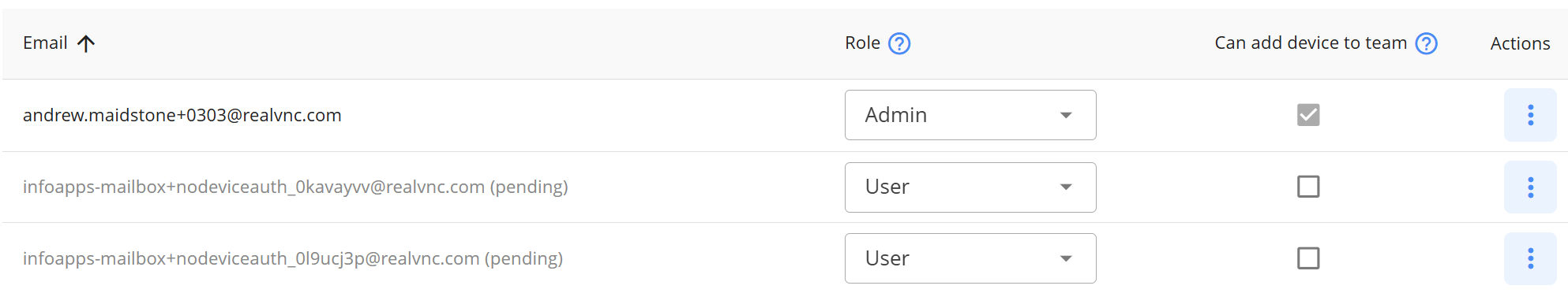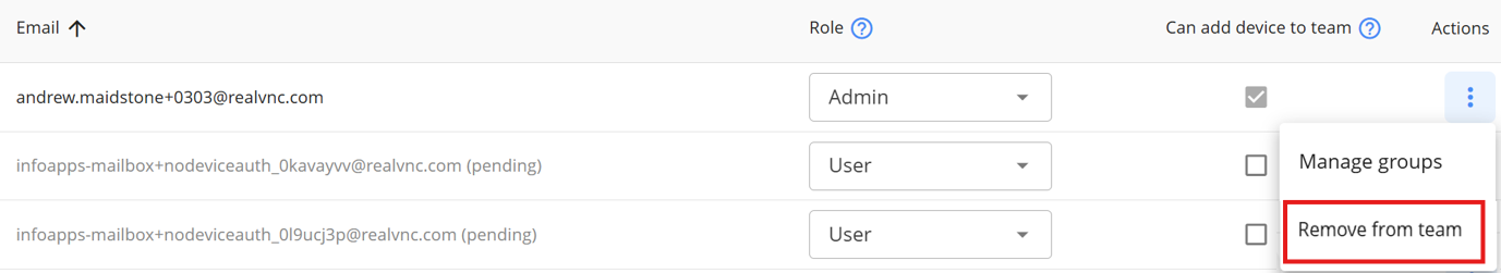 Each invitee receives an email; they should follow the instructions to create their own RealVNC account, and when they do you’ll see them appear in the list of users on the People List page: