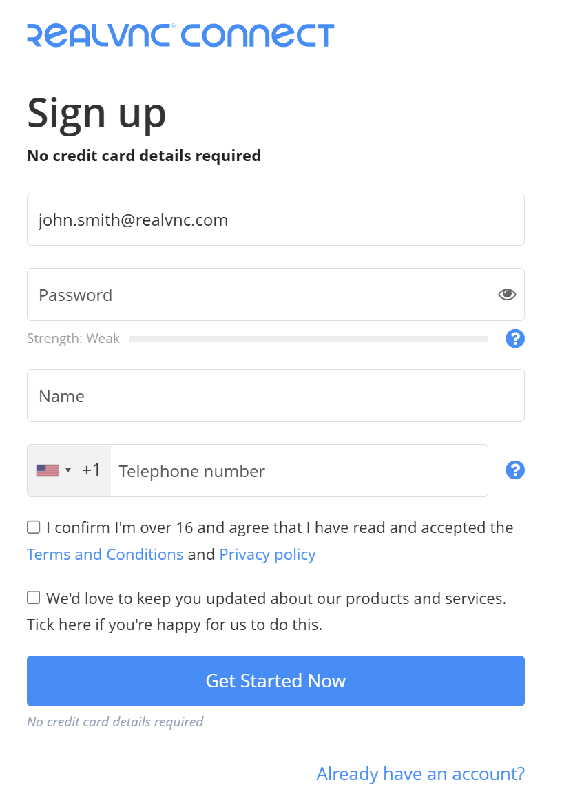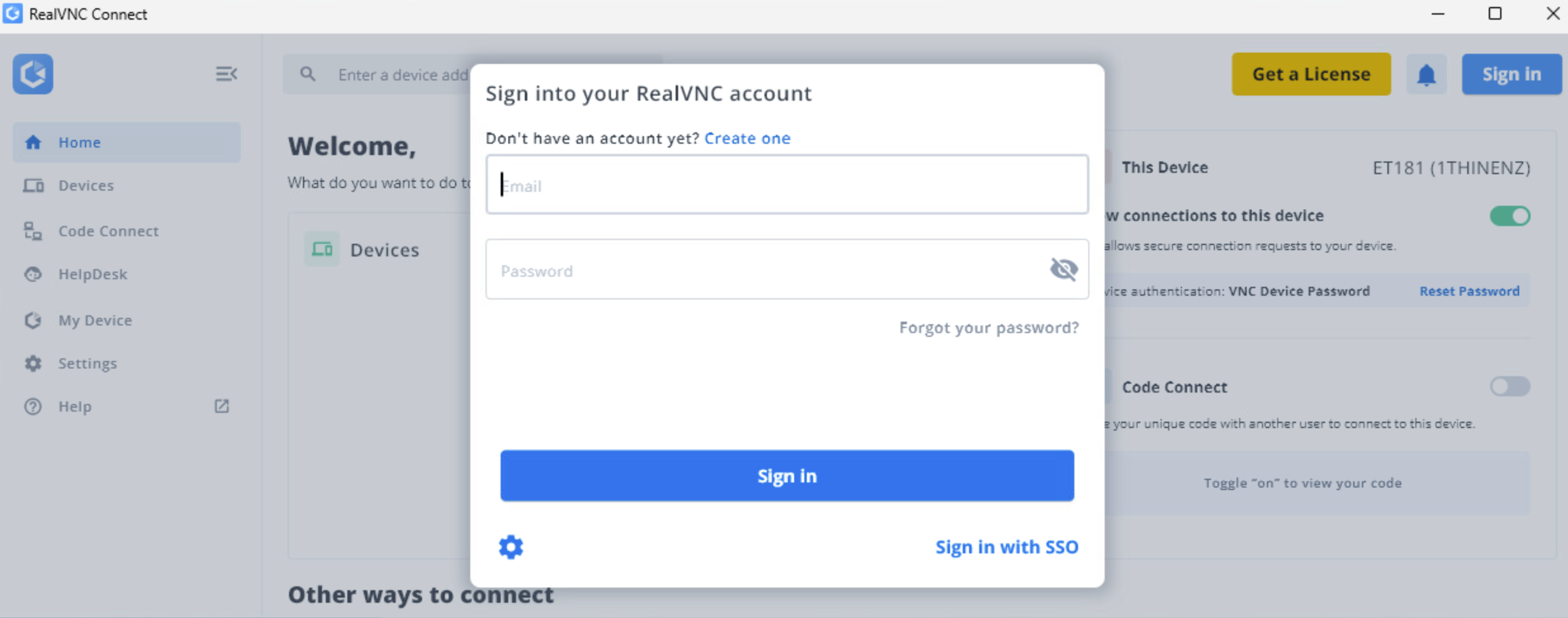 1. Sign in to the RealVNC Connect Portal