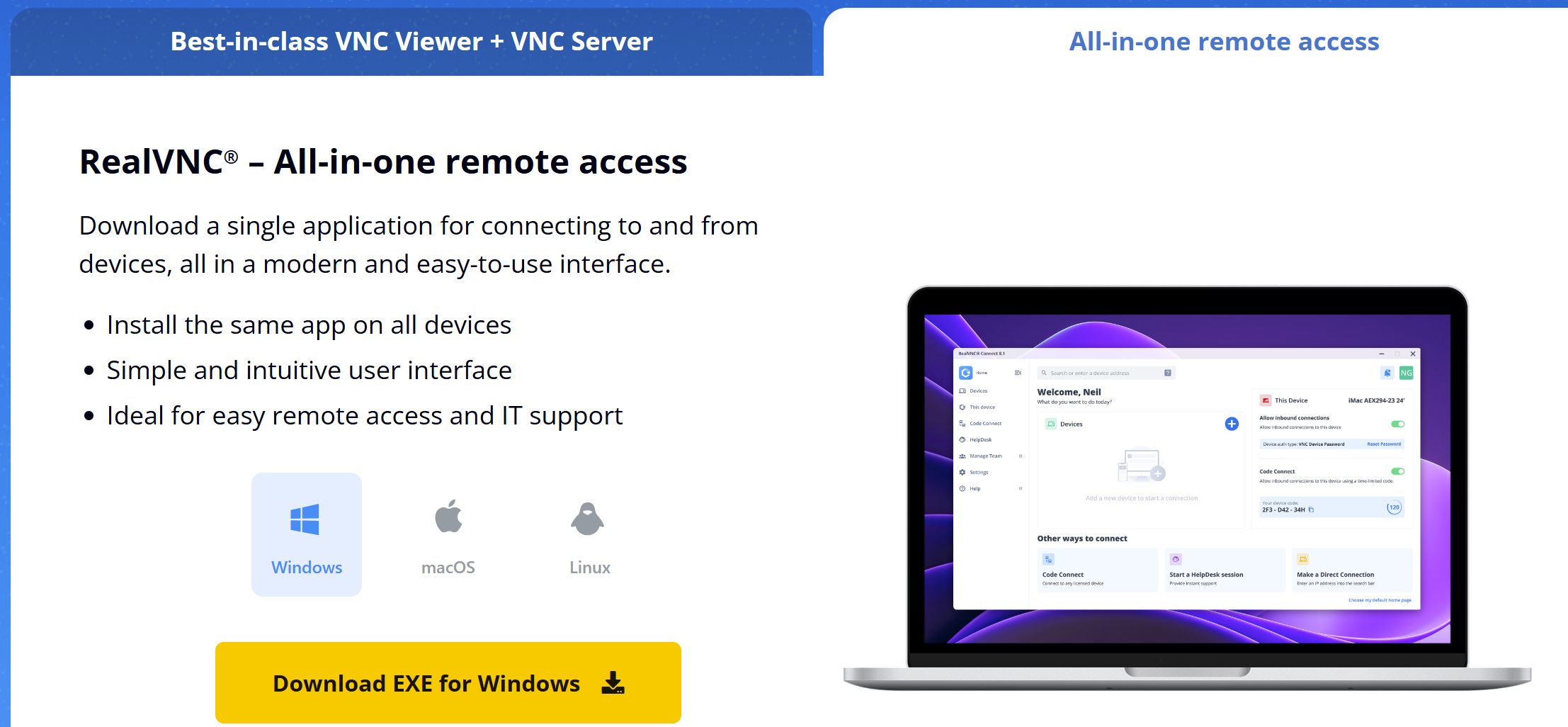 4. Click "Get RealVNC Connect" to download and install RealVNC Connect